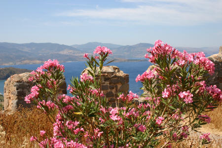 Zusammensetzung der griech. Wörter Olea = Ölbaum und andreios = kräftig. Nerium = nass, weist auf den Standort des Oleanders hin