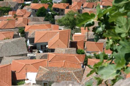Großartig die Aussicht über die roten Ziegeldächer von Mólyvos.