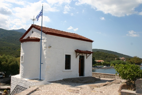 Der berühmte Schriftsteller der Insel, Stratis Mirvillis, (geb. in Sikamineas) hat über diesen Ort und die Kirche den Roman „Die Madonna mit dem Fischleib“ geschrieben (mehr Info)