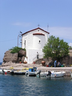 „Panagia Gorgóna“ heißt die kleine Kapelle über dem Hafen, geweiht einer Art Meerjungfrau mit einem Mariengesicht (s. Lesvos News vom 13.5.2009 !)