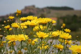 Kraut der Pflanze (auch Goldblume und Speisechrysantheme genannt)