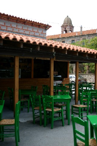 Vor dem Kloster die Möglichkeit zu einer Rast. Getränke, kleine Speisen und Mitbringsel werden angeboten.
