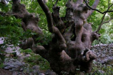 Gipfel des Lepetimnos führt. Auch dort trifft man auf riesengroße Platanen. Es