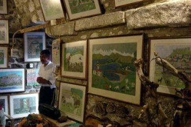 verdienen, führte Theophilos in Tavernen Wandmalereien aus, so auch in Karini.