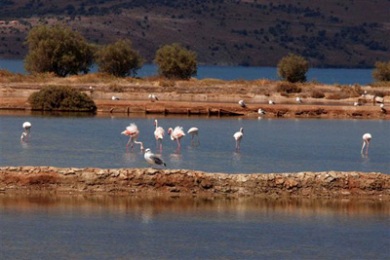 durften wir beobachten, wie die Flamingos nicht nur um die Salinen bei Skala