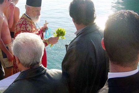 Tages: Der Priester wirft das Kreuz ins Meer/Hafenbecken und einige abgehärtete