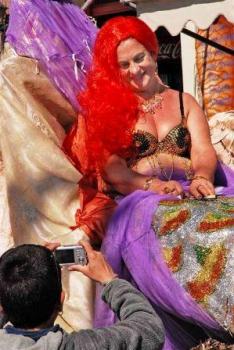 glitzernde Meerjungfrau, dargestellt von einer sehr alten Lady, die keine Kosten