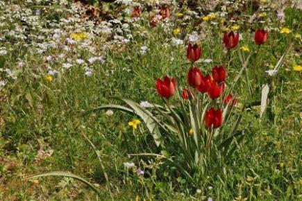 man die hier auf Lesvos niedrig wachsenden Tulpen, die „Ägäischen Tulpen“ (Tulipa