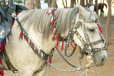 geschmückten Pferde und den Stier durch das Dorf, um Geld zu sammeln,