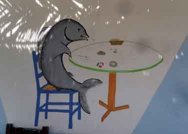 Wandgemälde auf dem Balkon), speisten wir wie die Könige. Der „loutsos“,