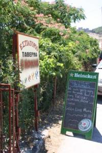 Die Tafel zeigt ein besonderes Highlight: 4 x die Woche Live-Musik. Bei Klängen von Gitarre-, Bouzouki und Geige wird gesungen und – wie man sie die Griechen kennt – bei vorgerückter Stunde auch getanzt.